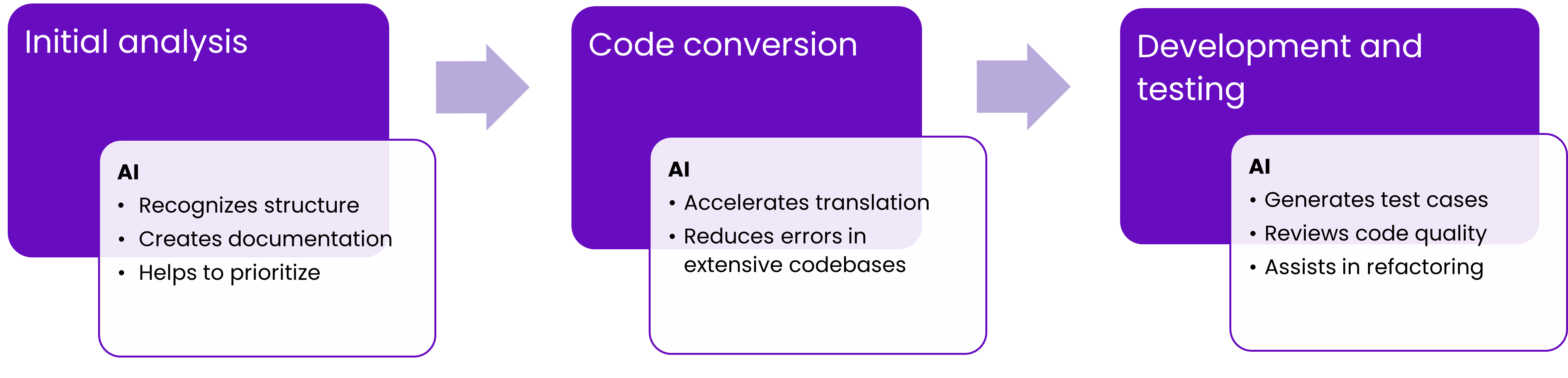 In this blog, we look at how AI can be used at different stages of software modernization.